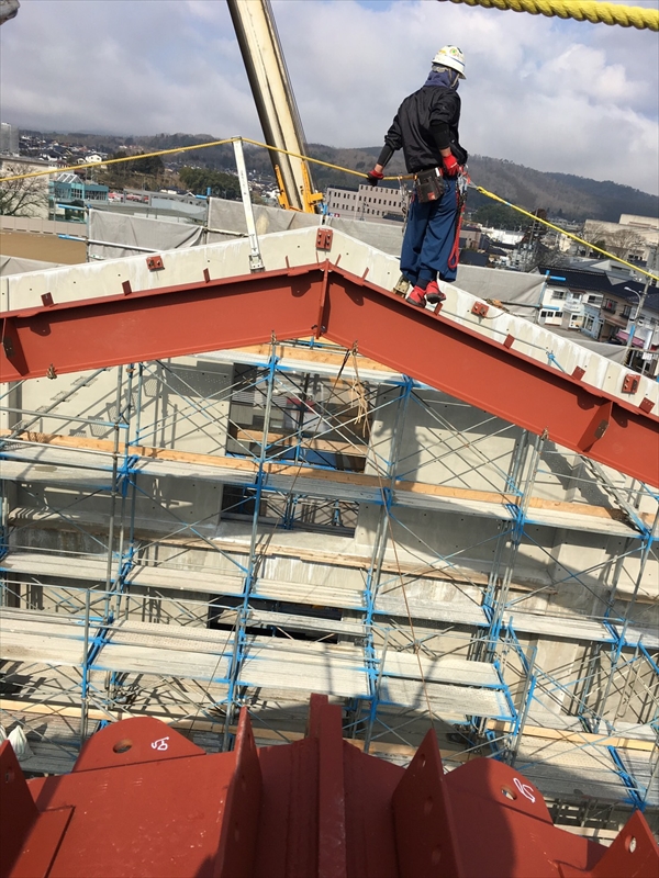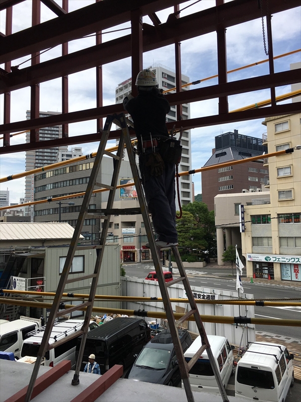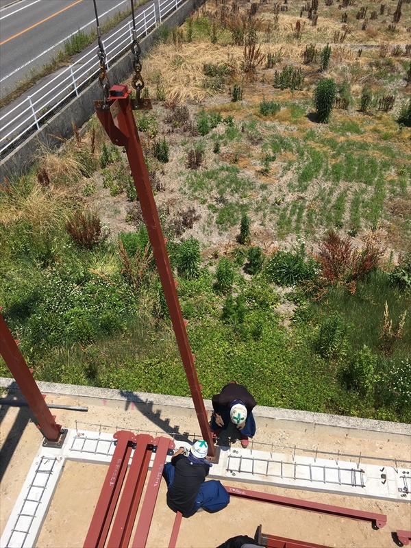 鉄骨の大きさや形、建物の形状によって、吊り方や作業のしやすい角度が変わってきますので非常に精度のいる作業になります。