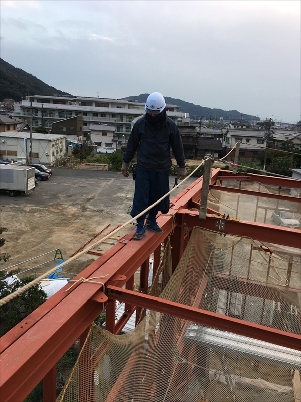 そうして作りあげた鉄骨を使用して、現場で組み立て作業を行います。