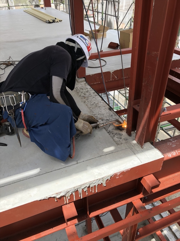 ガス切断、アーク溶接により、建物を修正したり、増築したりします。